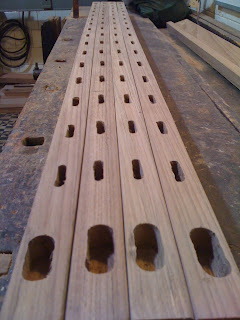 Agora sim, passei a trabalhar nas peças verticais da moldura, e na semana que vem começo a acertar os encaixes das espigas.