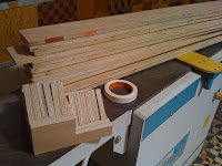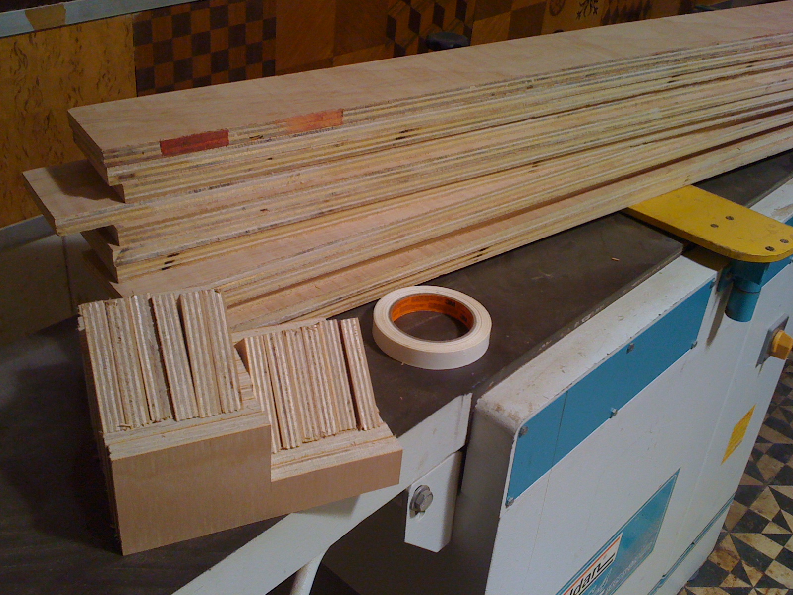 As 12 peças de compensado de 1,10 x 10 cortadas, e tinha que fazer também os 12 pés para fixas as prateleiras, ah também cortei 12 triângulos que irão servir como uma mão francesa para não correr o risco das “arquibancadas” caírem.