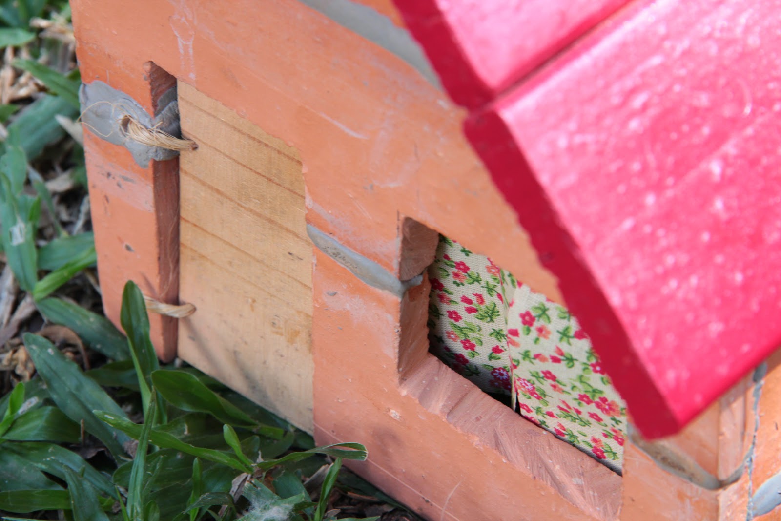 E finalmente a casa de “tijolos”, que o papai usou lajotas e durepox. Essa casa deu um pouco mais de trabalho pois tinha que cortar as portas, janelas, chaminé e depois pintar o telhado.
